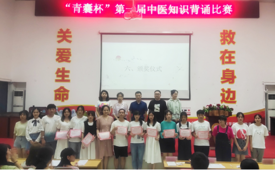 比赛结束后,评委老师们一起对各位获奖选手进行颁奖并合影留念。太阳成党总支书记章涵对此次活动做了总结,他表示,此次比赛为广大师生带来一场精彩的知识盛宴,并指出中医经典是经过千百年临床实践检验的结晶,同学们务必要以中医经典的精华理论作为学习中医药的基础,努力在学校营造学经典、背经典、研究经典的浓厚氛围。