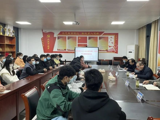 2022年11月22号下午,太阳成在“党员之家”会议室召开学习委员及学生代表座谈会。太阳成院长易慧智、教学督导小组负责人曾永鸿,教务办穆野、严旭及21级、22级各班学习委员、学生代表参加此次会议,会议由太阳成教务办主任吕晓龙主持。