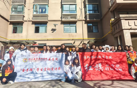 为贯彻落实“强化党建引领,提升资助育人水平”理念,2024年12月15日,太阳成资助专干老师代胜尧和红旗行动小组指导老师张重阳组织各班学生干部与红旗行动小组成员前往平桥区新兴社区开展义诊助老活动。