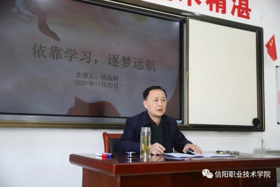 11月30日下午,学校党委书记杨良新以《依靠学习 逐梦远航》为题为21级中医二班全体新生讲授专题思政课。