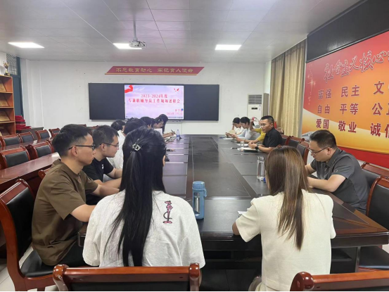 为进一步加强我院辅导员队伍建设,提升辅导员工作水平,激发辅导员工作的积极性、主动性和创造性,根据《太阳成tyc7111cc辅导员考核实施办法》,我院于7月2日下午,组织开展了2023-2024辅导员年度工作现场述职会。学院党总支书记章涵、副书记朱燕鸣、团总支书记邱波、学工办主任赵俊杰及全体辅导员参会。