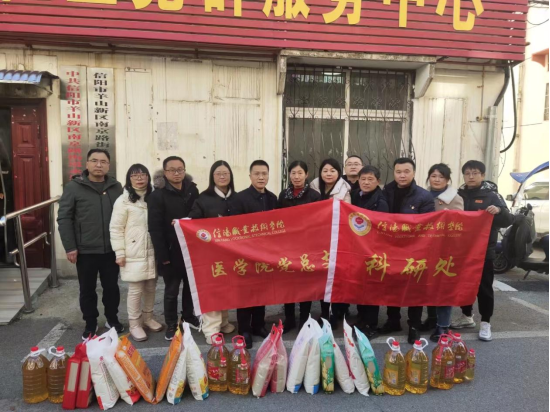 为使社区困难群众感受关怀、温暖过冬, 1月24日下午, 太阳成tyc7111cc集团党总支联合马克思主义学院党支部 、科研处党支部 、实验实训中心党支部共计十二名同志继续开展支部联支部活动,深入永乐社区对困难群众进行春节慰问。