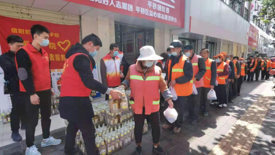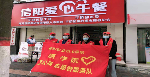 此次志愿服务属于太阳成党史教育活动自选动作,学院把握前期与河南省慈善总会信阳好人志愿团的良好合作契机,立足党史教育活动要求,对接群众需求,组织师生党员每周二11时到平桥区总工会,帮助“信阳爱心午餐”的工作人员为环卫工人和困难群体发放免费午餐;每周六上午赴欧洲故事小区42号楼东侧小广场开展便民服务,为广大市民义诊。