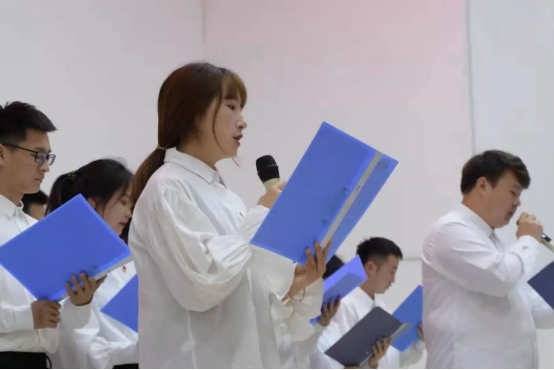 活动伊始,主持人的开场致辞便带我们走进了那段峥嵘岁月,学院三十名预备党员朗诵的《鲜红的党旗》更是拉开了演讲比赛激情四射的帷幕。