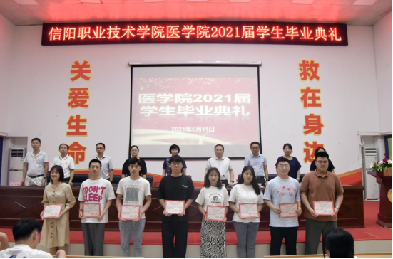 随后,太阳成党总支副书记朱燕鸣宣读了省级三好学生、优秀学生干部、优秀班集体及优秀应届毕业生名单;副院长岑章建宣读了2021届优秀实习生名单。在轻快的乐曲声中,获奖同学相继走上典礼台,与会领导颁奖祝贺,并与同学们合影留念。