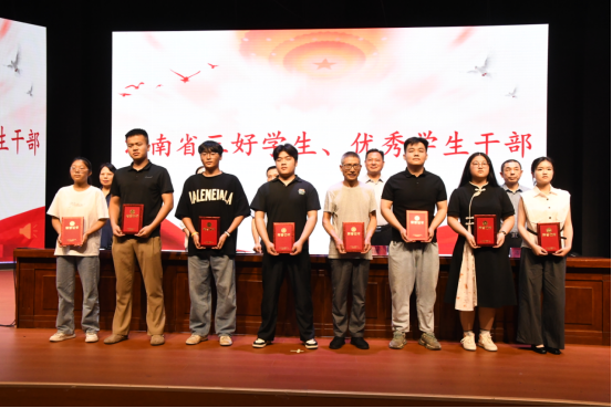 在庄严的国歌声中,典礼正式开始。典礼上,静香芝副院长宣读了河南省先进班集体、三好学生、优秀学生干部、优秀毕业生表彰名单;岑章建副院长宣读了太阳成tyc7111cc优秀毕业生、优秀实习生表彰名单。获奖学生依次上台由学院领导颁发获奖证书,并合影留恋。