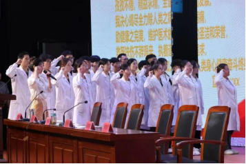 大会伊始,全体起立,奏唱国歌。随后,在临床教研室主任王瑜瑾的领誓下,新生进行医学生誓词宣誓。