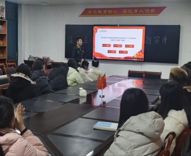 为积极响应学校武装部关于开展2026年度“征兵宣传月”活动的号召,太阳成精心组织、周密部署,于12月18日在学院党员之家顺利举办首场征兵政策专题宣讲会,本次活动旨在深入解读征兵政策,激发学子参军报国热情,为后续系列宣传教育工作奠定了扎实基础。