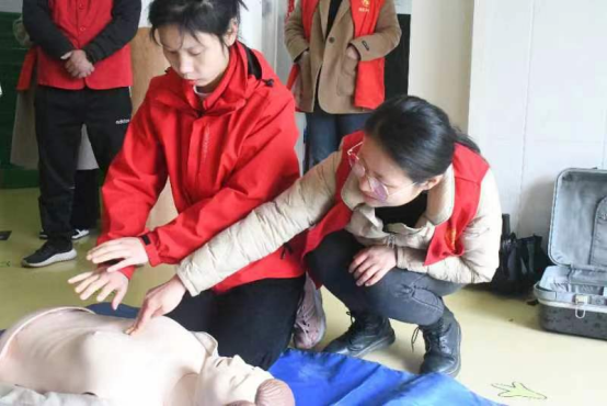 活动中,党员志愿者们身穿“红马甲”,携带水泵水管、沙袋、假人、听诊器等工具,充分发扬为群众排忧解难的奉献精神,在幼儿园教室里为孩子们普及抗洪防汛和医学救援知识并演示心肺复苏等动作,并邀请教师们亲身操作。大家分工明确,配合默契,用自己的实际行动诠释了共产党员的责任与担当。
