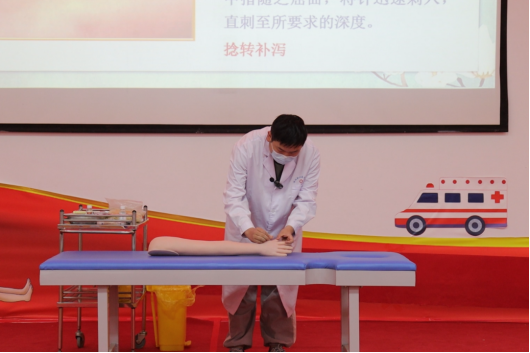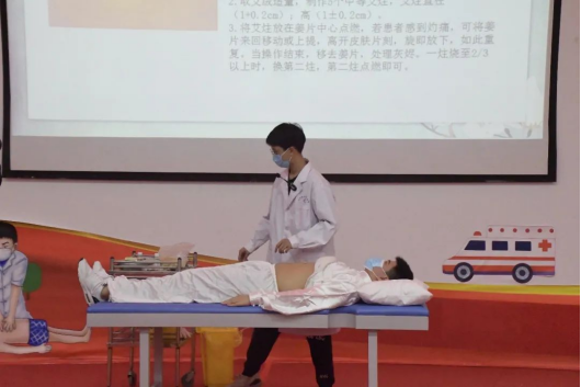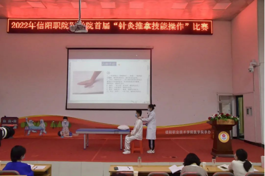 本次比赛共分为画经点穴,针灸操作技术,常见成人推拿手法、保健按摩,健身功法技术四部分。